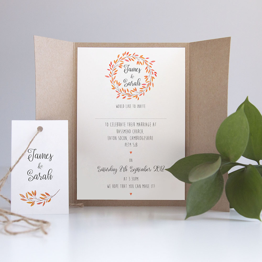 Order a sample of our beautiful gatefold wedding invitations with your choice of Kraft brown, white or coloured envelopes. These invites are printed on thick 330gsm smooth white or ivory card or on our Premium Cream Textured card and then mounted onto Kraft brown card. We finish them off with a generic tag tied around the card with twine. Samples are a great way to try out different styles and designs so that you find your perfect match. We can alter almost any aspect of the invitation so if you would like something altered, please don’t hesitate to ask. Just let us know if you’d prefer a different font or want the design tweaked. Read on to find out more about the samples available. To place a full order, click the Purchase Full Order button at the top of the listing.
