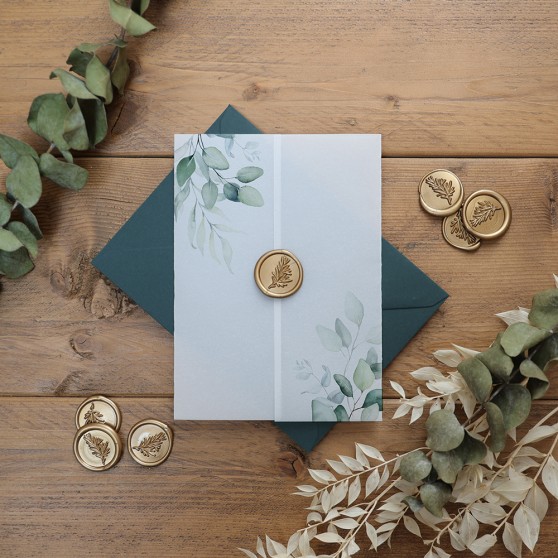 Our Dreamy Eucalyptus DE10 design features gentle layers of hand painted eucalyptus leaves in muted green and sage tones. The foliage frames the top and bottom of the card in a soft, flowing arrangement that pairs beautifully with the classic serif text and understated script. A natural fit for elegant garden weddings, botanical styling or minimalist stationery lovers. Available in A7 A6 and 5x7” sizes with a drilled hole for ribbon or twine.