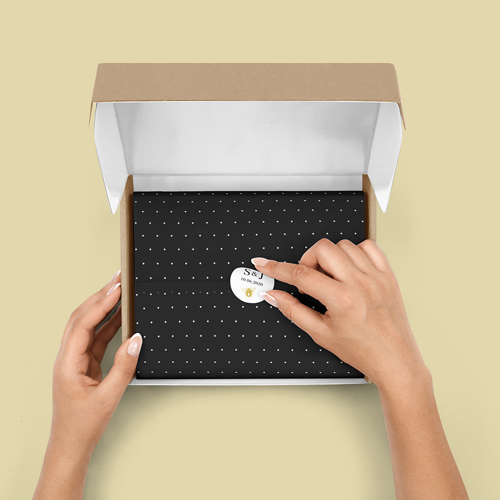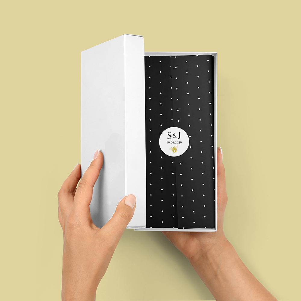 Create personalised wedding stickers to seal the envelopes of your wedding stationery or to decorate your wedding favours! Our bespoke wedding stickers are sold in sheets of 24, 35 or 48 and in either a gloss or matt finish.