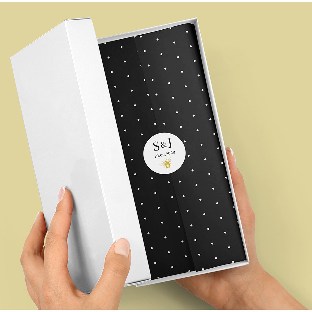 Impress your guests with your eye for detail by using these personalised wedding stickers as envelope seals for any of your wedding stationery, giving them a glimpse of your wedding style before they even open the envelopes.  These bespoke wedding stickers are also an ideal way to turn your wedding favours into beautiful keepsakes for your wedding guests and will help tie them into the rest of your wedding decorations.