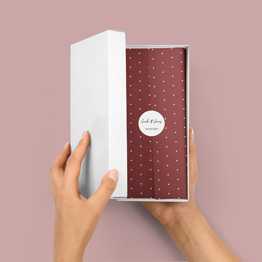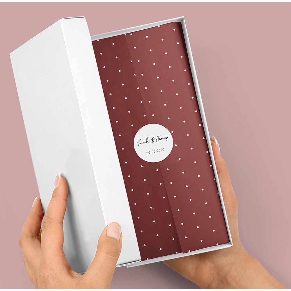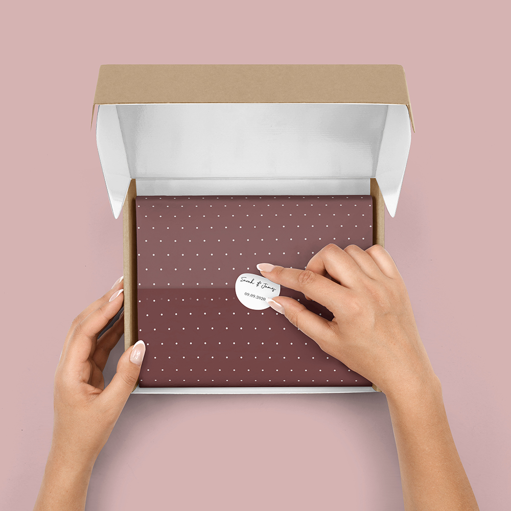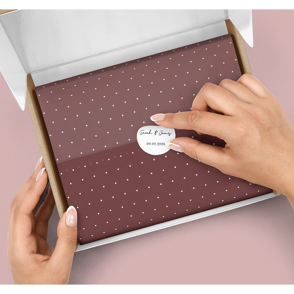 Create personalised wedding stickers to seal the envelopes of your wedding stationery or to decorate your wedding favours! Our bespoke wedding stickers are sold in sheets of 24, 35 or 48 and in either a gloss or matt finish.