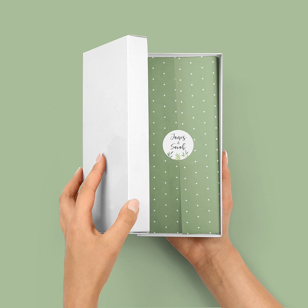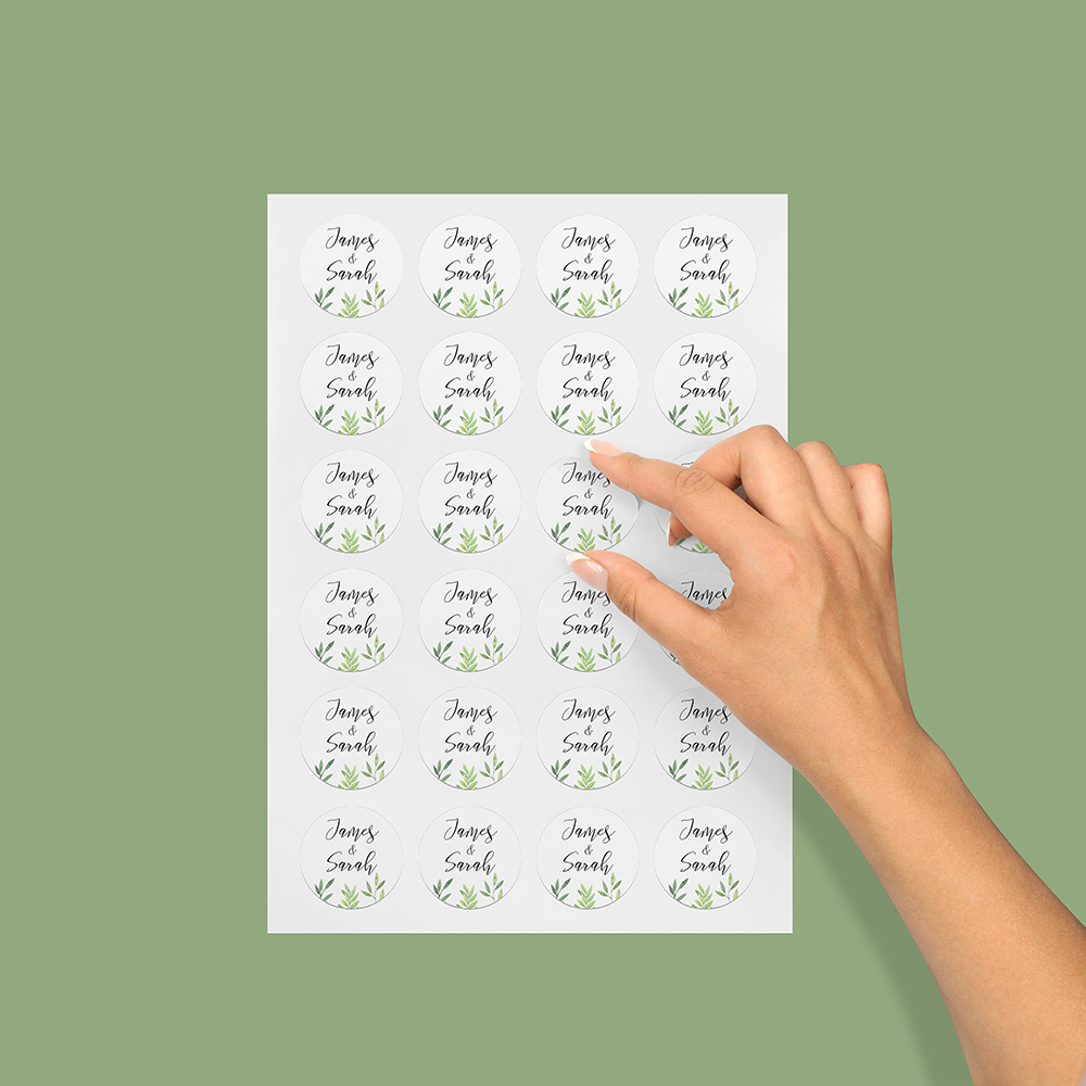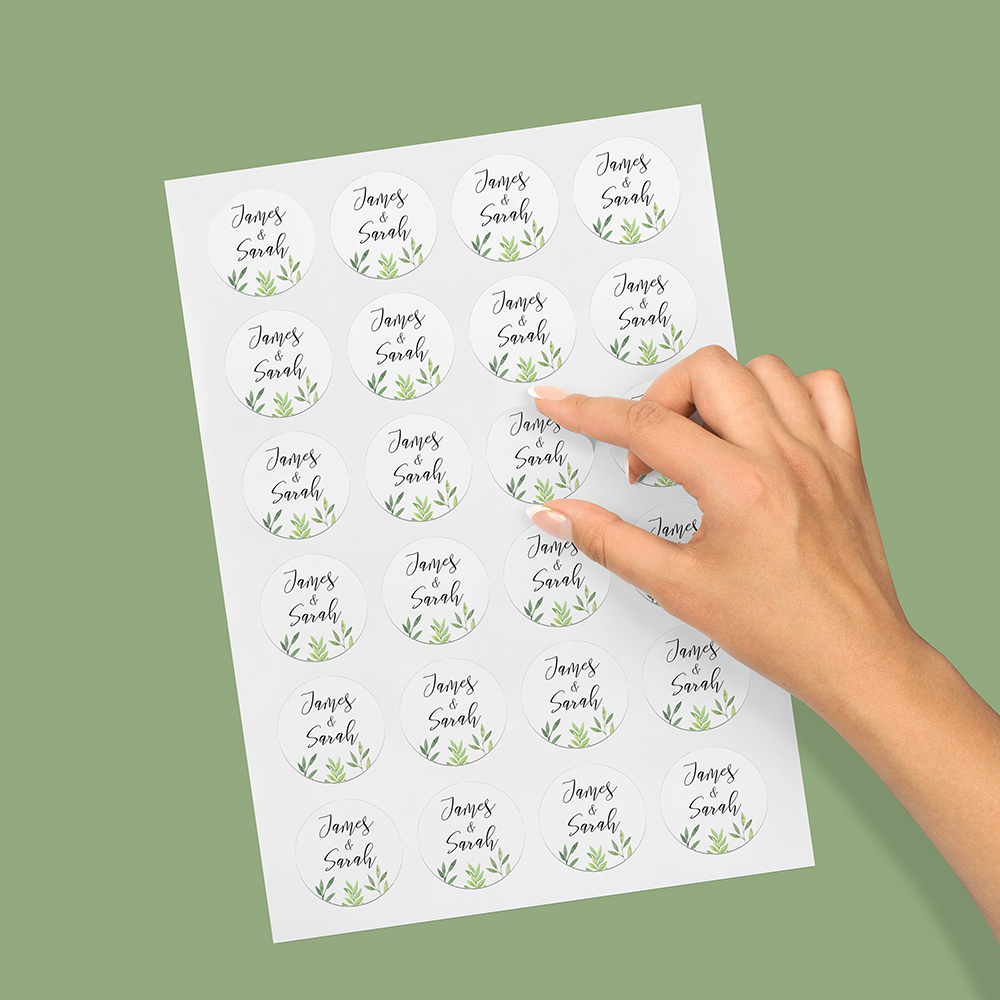 Create personalised wedding stickers to seal the envelopes of your wedding stationery or to decorate your wedding favours! Our bespoke wedding stickers are sold in sheets of 24, 35 or 48 and in either a gloss or matt finish.
