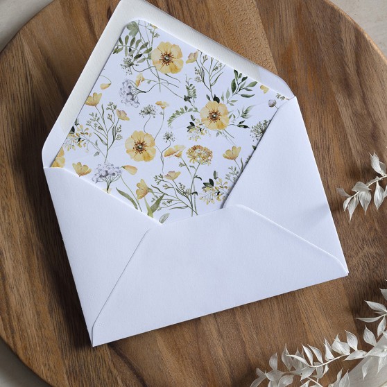 RSVP ENVELOPE LINER: We can create matching envelopes liners to fit into your RSVP envelopes. We will create them to match the invitation design, but you can of course choose any other design to compliment your invites. Just let us know when ordering. You can have them loose so that you glue them in yourself, or you can opt for pre-assembled where we do that for you.
