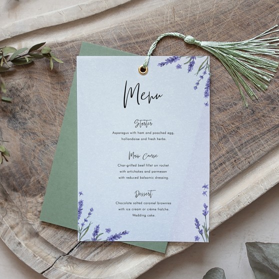 The 'Lavender L11' save the date card combines minimalist elegance with subtle floral accents. Delicate lavender sprigs are thoughtfully placed to frame your wedding details, creating a simple yet sophisticated design. The clean lines and understated florals make this card a versatile choice for modern, rustic, or garden-themed weddings.