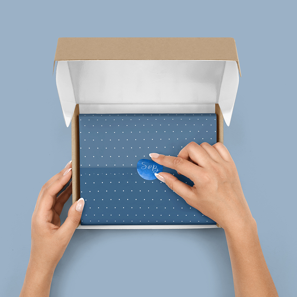 LARGE ROUND STICKERS – Large stickers are 43mm in diameter and come in either gloss/matt white. There are 24 on a sheet. They are fully customisable so feel free to refer to one of our other stationery items for design and/or font.
