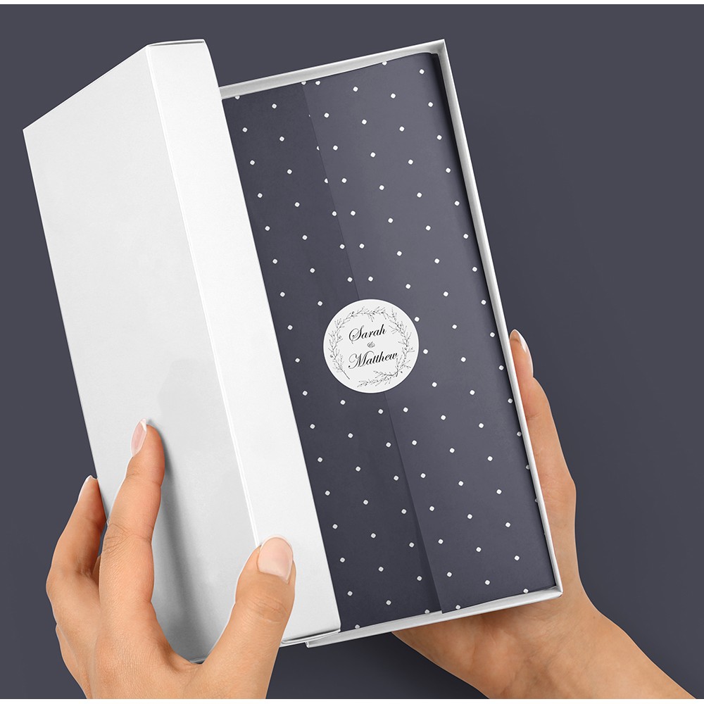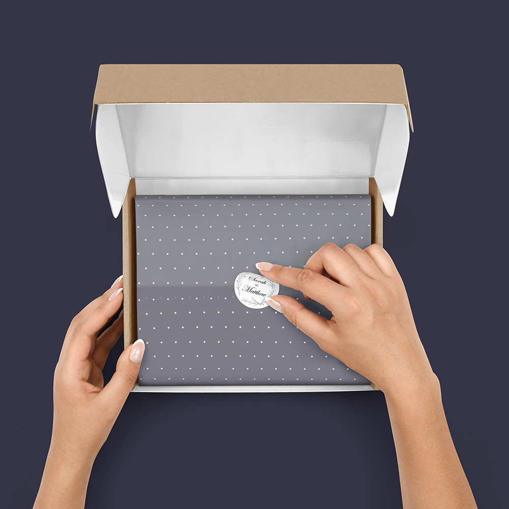 Create personalised wedding stickers to seal the envelopes of your wedding stationery or to decorate your wedding favours! Our bespoke wedding stickers are sold in sheets of 24, 35 or 48 and in either a gloss or matt finish.