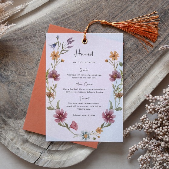 Secret Garden is inspired by romantic florals and soft watercolour botanicals, perfect for weddings that celebrate nature and timeless beauty. Each personalised tag can be tailored to match your theme, from your choice of ribbon, twine, or tassel to optional coloured card backing for added depth. The delicate floral artwork and graceful typeface create a dreamy finish that pairs beautifully with both rustic and elegant stationery. Ideal for wedding favours, place settings, or gifts, these tags add a charming, botanical touch that guests will adore.