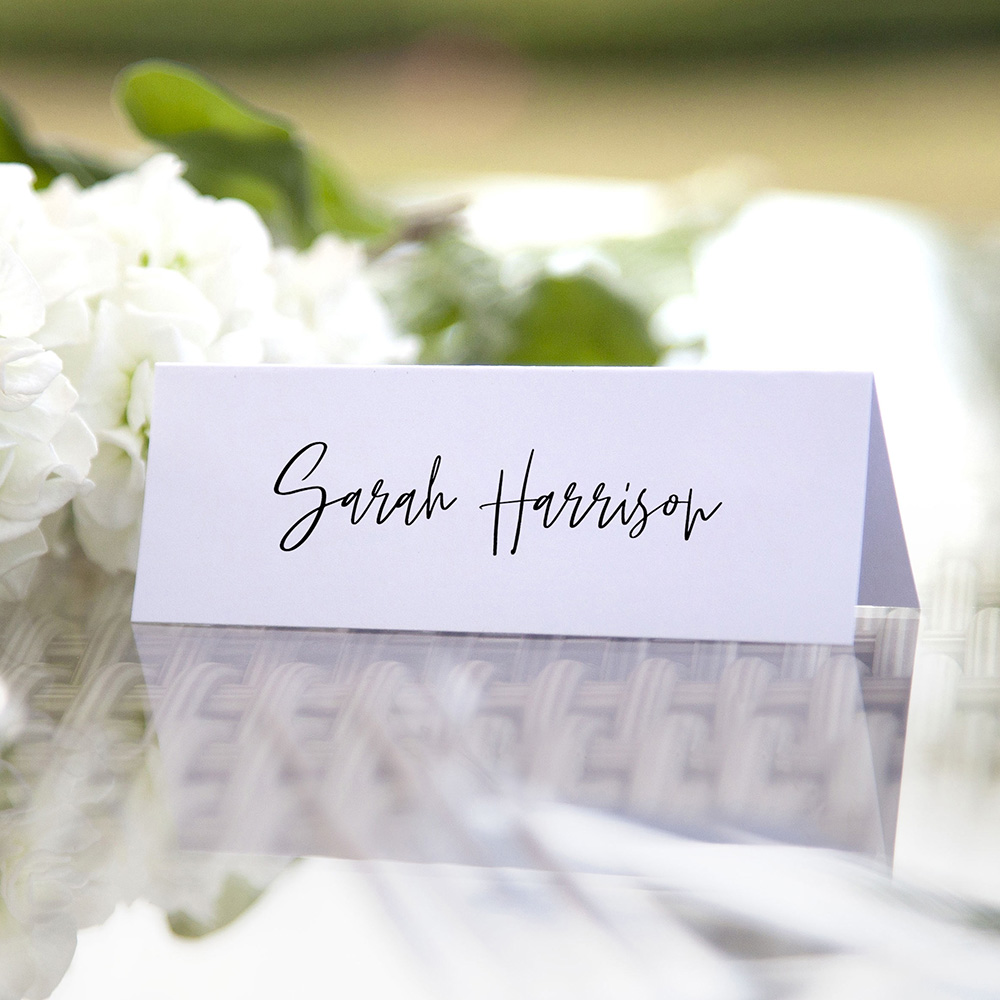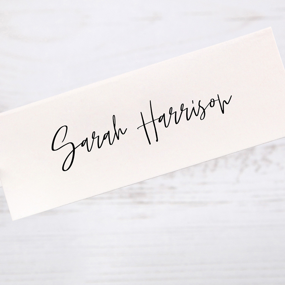 Place cards are available on your choice of 330gsm smooth White, 330gsm smooth Ivory or 350gsm Premium Textured Cream card. They come pre-creased to make folding easy or you can request for them to be left flat without a crease. Need them quickly? Please read details on the Product Information tab.
