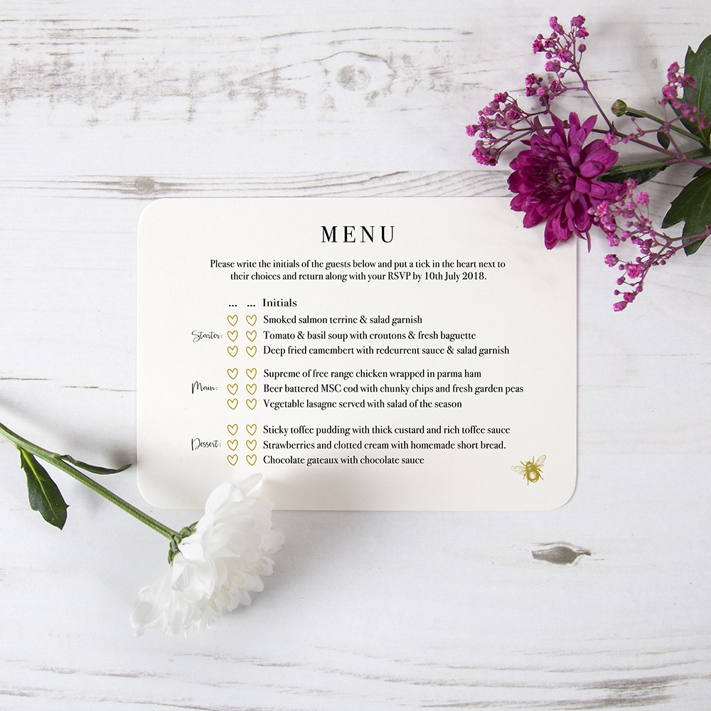 'Bumble Bee' Hole-punched Wedding Invitation Sample