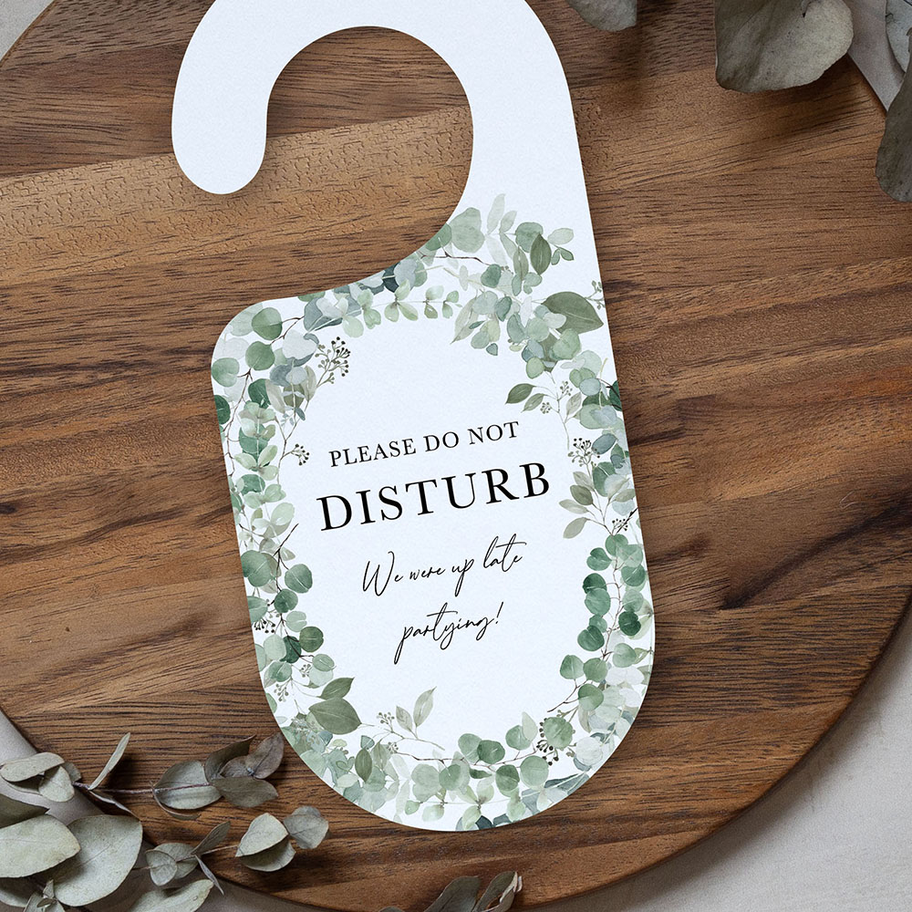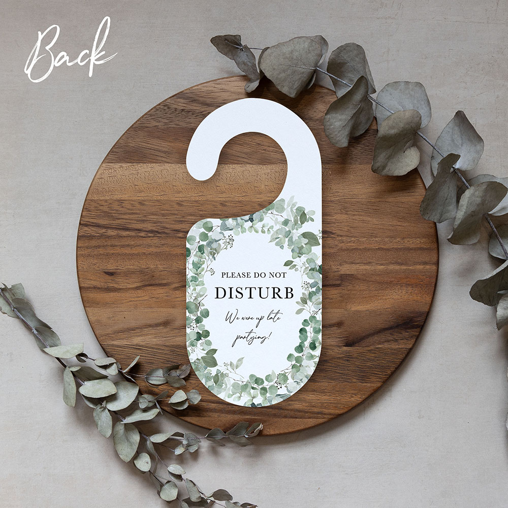 Perfect for hotel weddings, these door tags can be used as thoughtful ‘Do Not Disturb’ signs for guests or as a stylish way to welcome them upon arrival. Many couples choose to include these in their wedding welcome bags or hotel room packages. The Classic Eucalyptus CE21 design blends beautifully with greenery-led themes and laid-back modern styling.