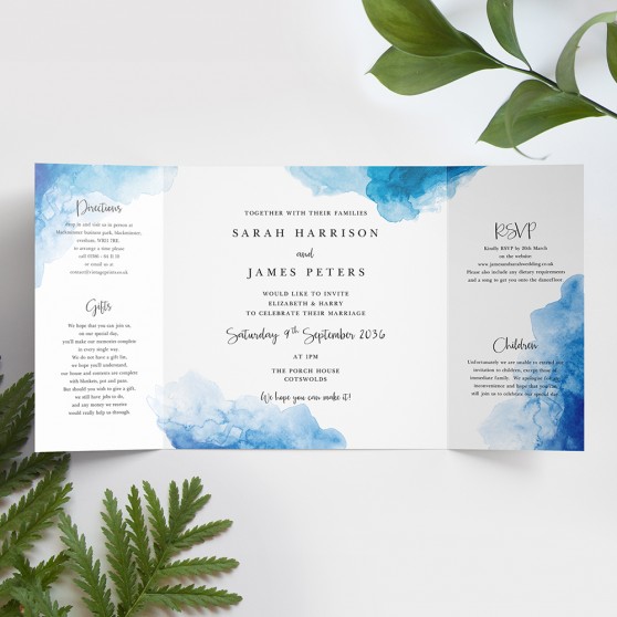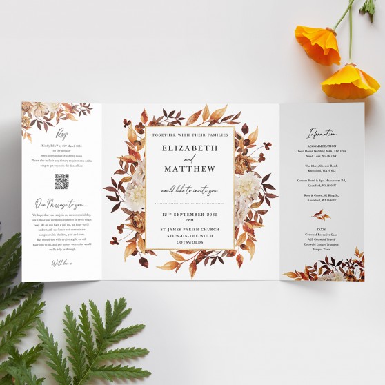 Our folded wedding invitations keep all your information together in one place and are fully customi..