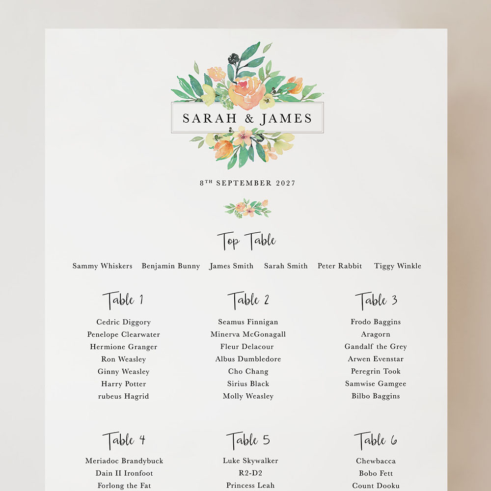 These table plans are easily adapted for any other occasion such as birthdays, balls, christenings, sporting events etc. Make the most of it and select double-sided printing to turn it into a dual-purpose display!