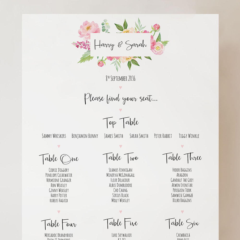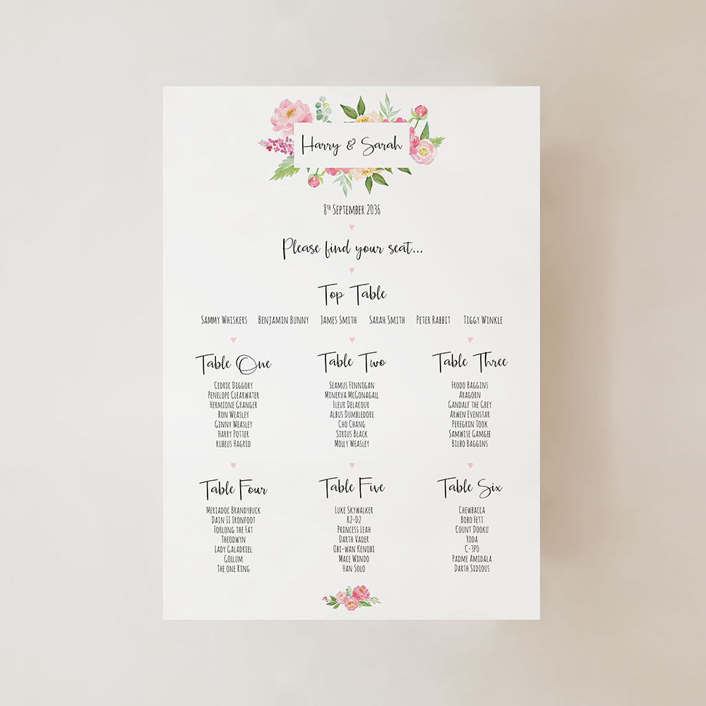 'Peony' Small A3 Table Plan