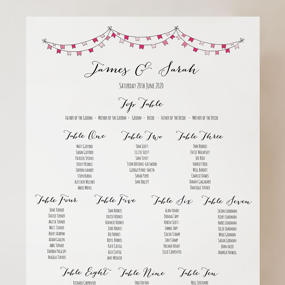 Email us at contact@vintageprints.co.uk with all the details you would like on your table plan. Please send all text typed with spelling and punctuation exactly as you would like it to appear as we copy and paste. Please do not use tabbing or spacing to space tables out. List each table separately, one below the other, as we need to be able to copy and paste each individual table.  We will create electronic proofs for you so that you have plenty of opportunity to make changes. Nothing goes to print until you are happy with it. Approved proofs are final, and we do not therefore limit the number of changes you can make to your electronic proofs within reason.