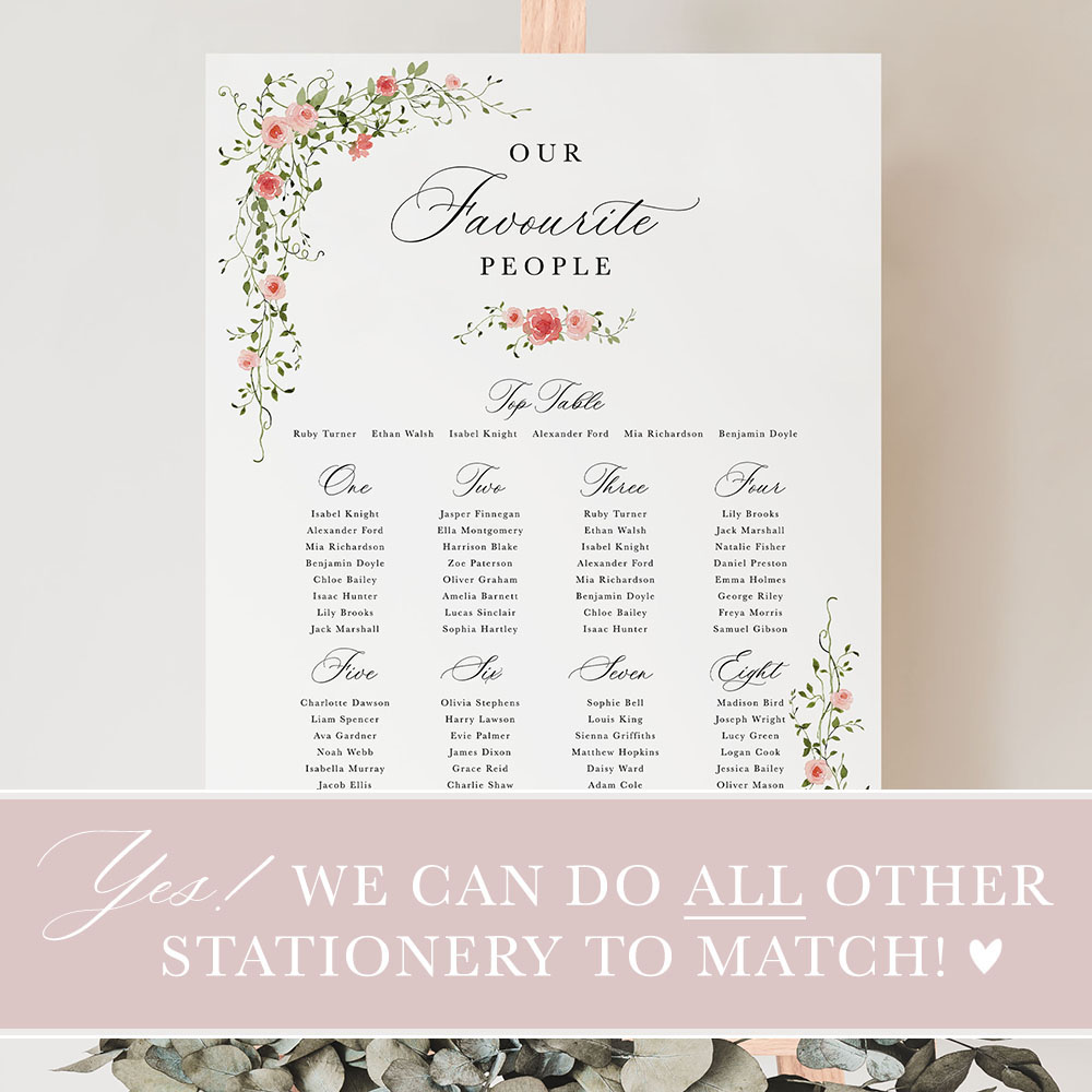 As with all our stationery, our table plans are fully customised for you for the perfect finish. We want you to be proud to display them at your venue. Vintage, modern, floral, delicate, bold, plain, we've got wedding stationery to suit everyone's style. Perfect no matter what time of year you are getting married. With other shapes and sizes available, we’re able to accommodate most requests so please just get in touch.