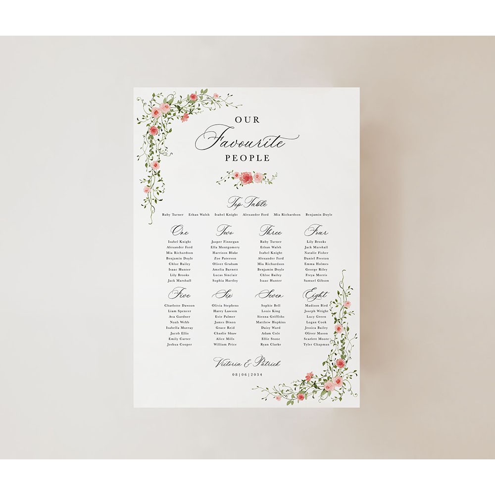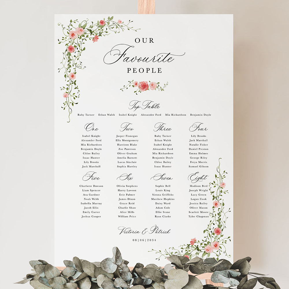 Email us at contact@vintageprints.co.uk with all the details you would like on your table plan. Please send all text typed with spelling and punctuation exactly as you would like it to appear as we copy and paste. Please do not try to use tabbing or spacing to space tables out and please don’t use bullet points or numbering. List each table separately as simple text as we need to be able to copy and paste each individual table.  We will create electronic proofs for you so that you have plenty of opportunity to make changes. Nothing goes to print until you are happy with it. Approved proofs are final, and we do not therefore limit the number of changes you can make to your electronic proofs within reason.