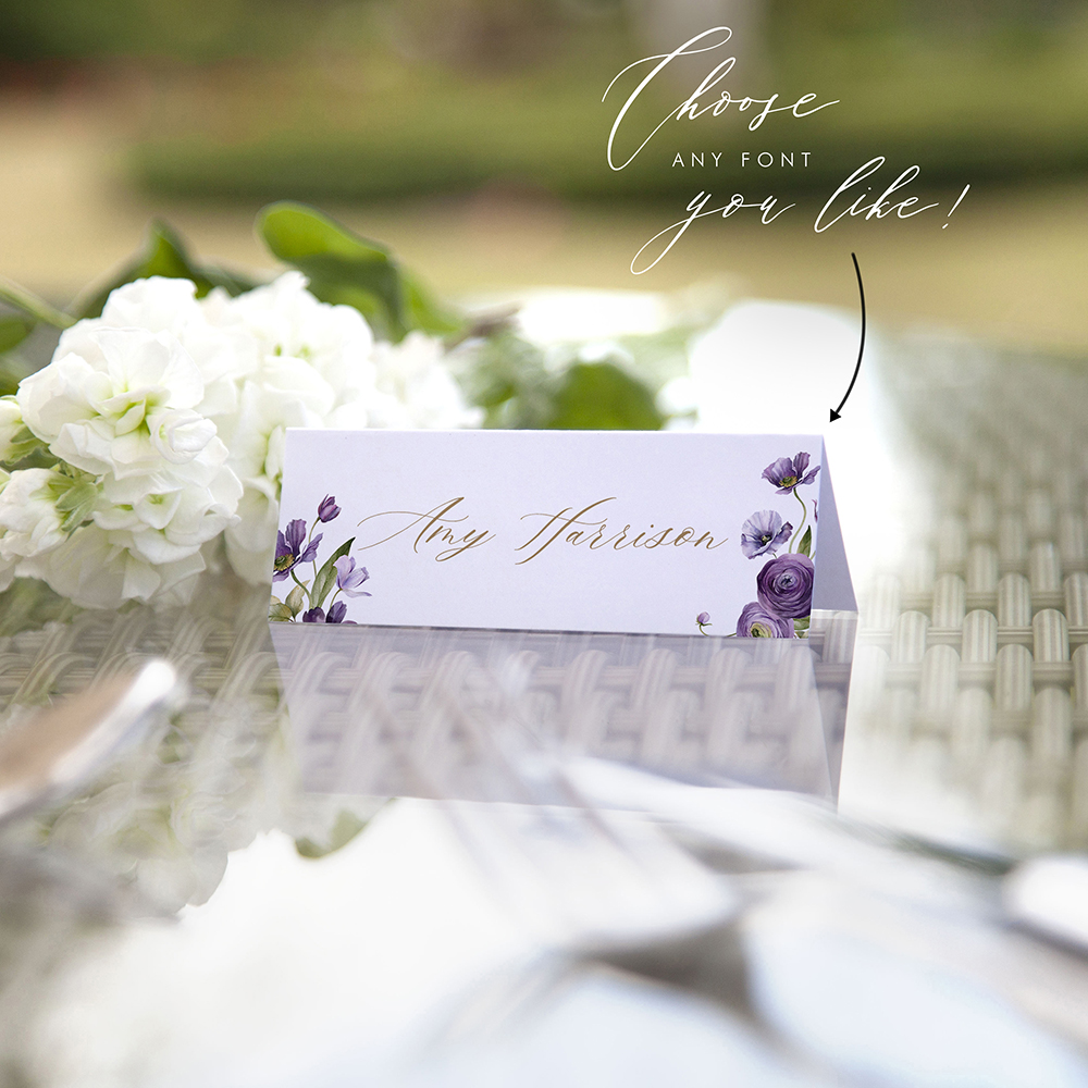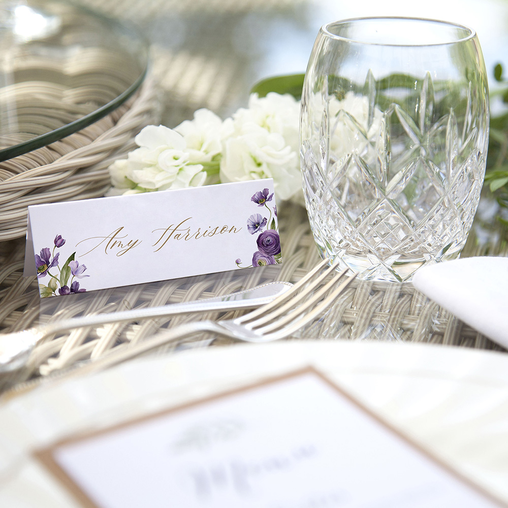Make sure your big day runs smoothly by organising your reception tables with our unique wedding place cards. To ensure a perfect match with the rest of your stationery, you can also customise and tweak any element of our bespoke name cards, from the font to the design. Purchase 20 or more for best pricing.